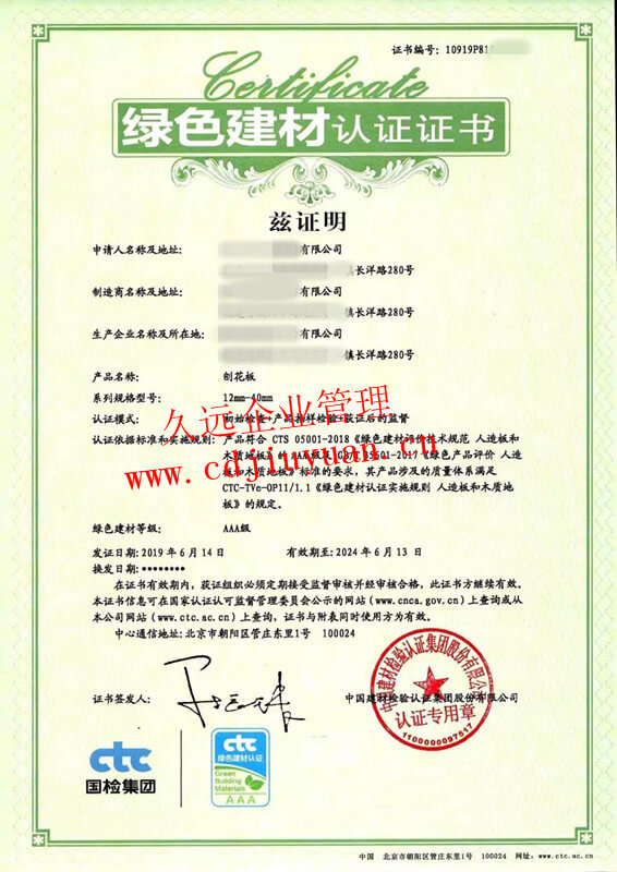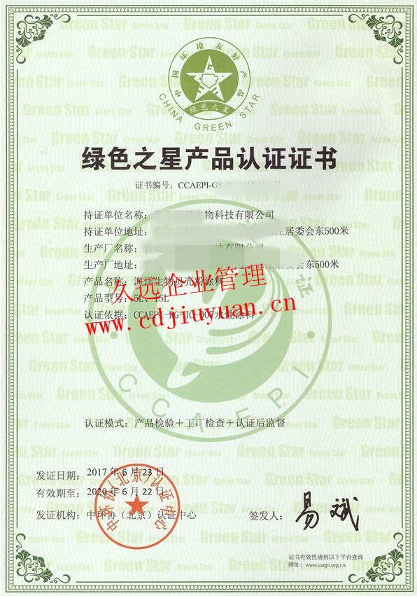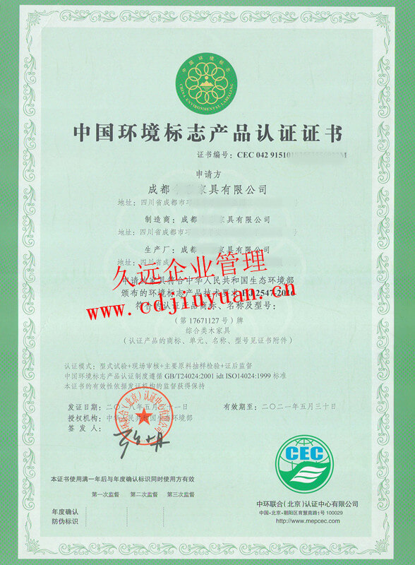 中國環(huán)境標志產品認證證書(十環(huán)認證)