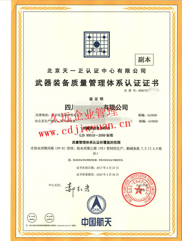 武器裝備質量管理體系認證證書